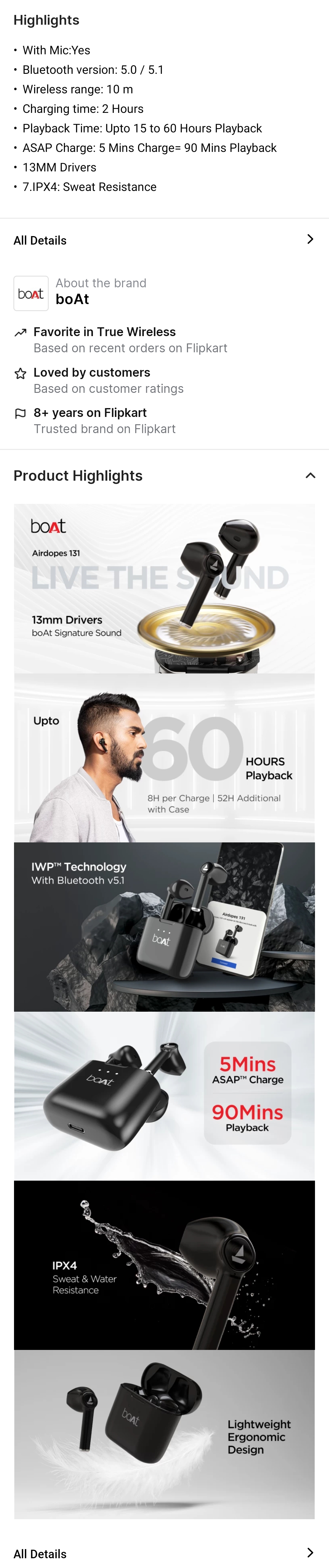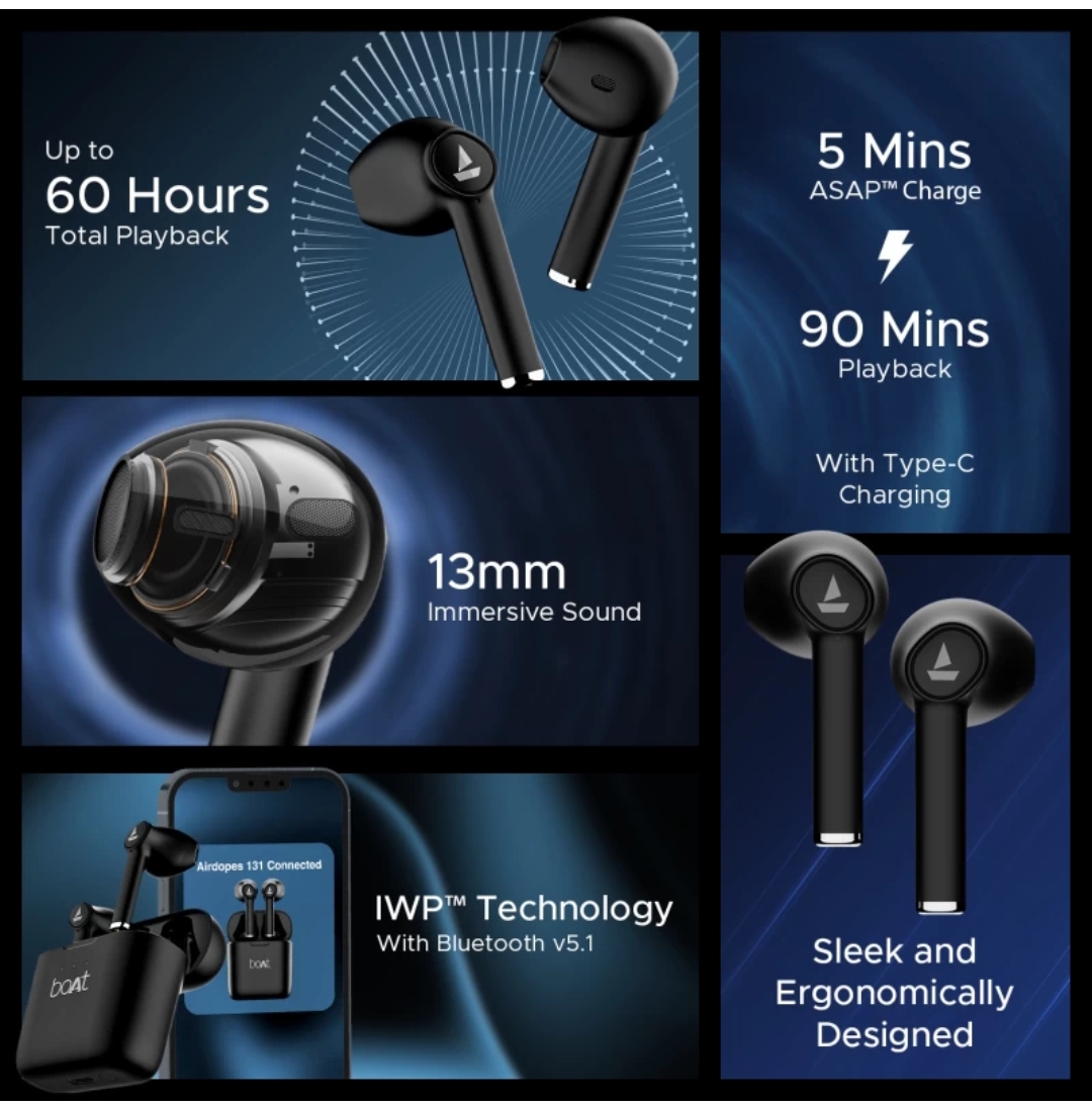 boAt Airdopes 131 with upto 60 Hours and ASAP Charge Bluetooth Headset (Active Black, True Wireless)